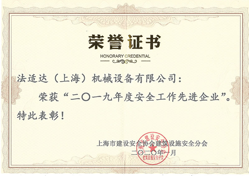法適達公司被評為2019年安全先進 時 間:2020-01-20 10:33:55 瀏覽次數:17627 2020年1月20日,法適達榮獲“2019年度安全工作先進企業”及“2019年度安全工先進個人”。