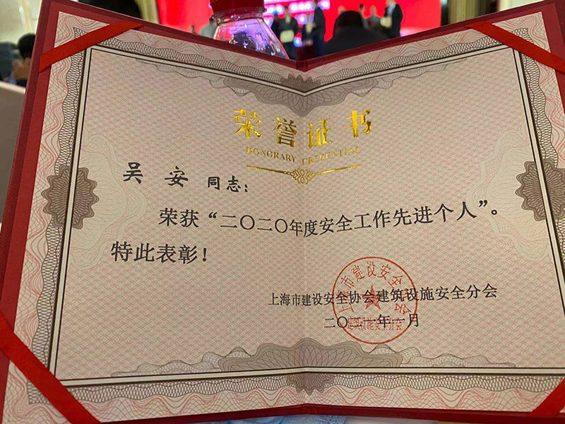 法適達公司榮獲上海市建設安全協會建筑設施安全分會頒發的安全工作先進企業以及個人先進 時 間:2021-06-20 14:32:36 瀏覽次數:2896 法適達公司榮獲上海市建設安全協會建筑設施安全分會頒發的安全工作先進企業以及個人先進。